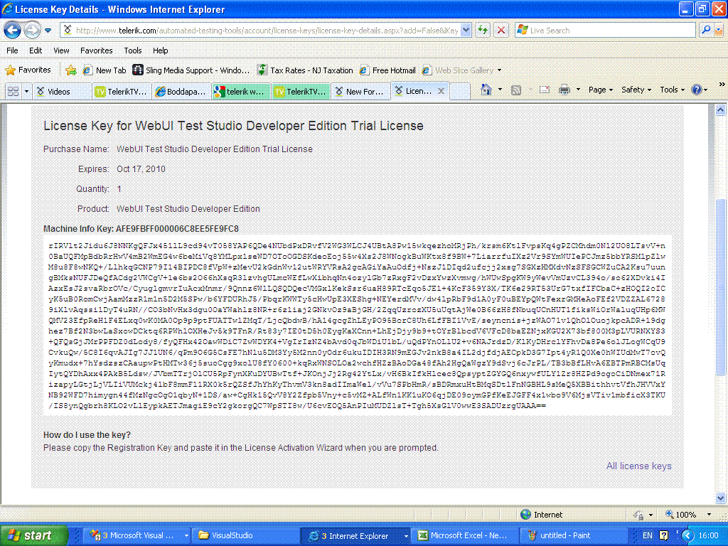 8. From the web site I copy the generated registration key, BUT the problem is that I haven't text box in the pop up screen (in the visual studio, under registration key label) to paste this code ?!