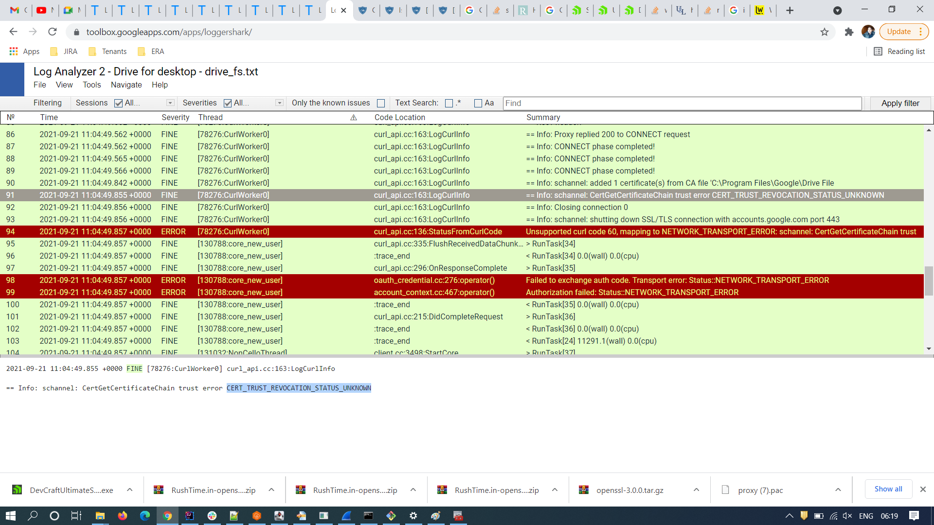 8.When we see all logs observed ssl verification is done with C:\Program Files\Google\Drive File Stream\51.0.9.0\config\roots.pem