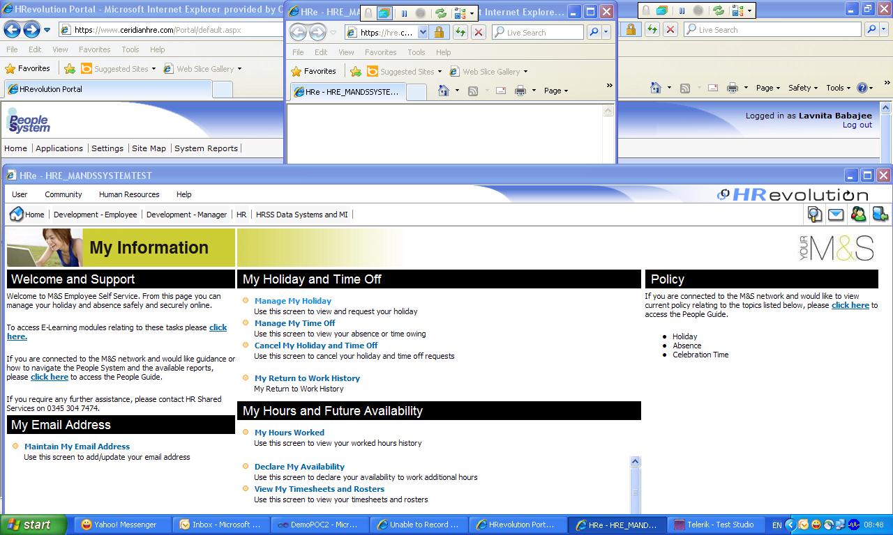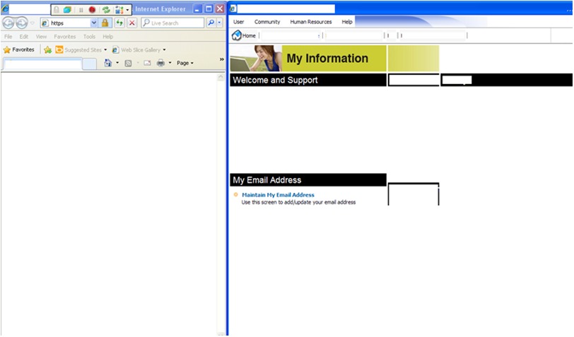 This screen is recognized by Telerik as well. Once in this home screen, I click the “Central HR”  button (bordered in green below)  and this navigates me to a new window
