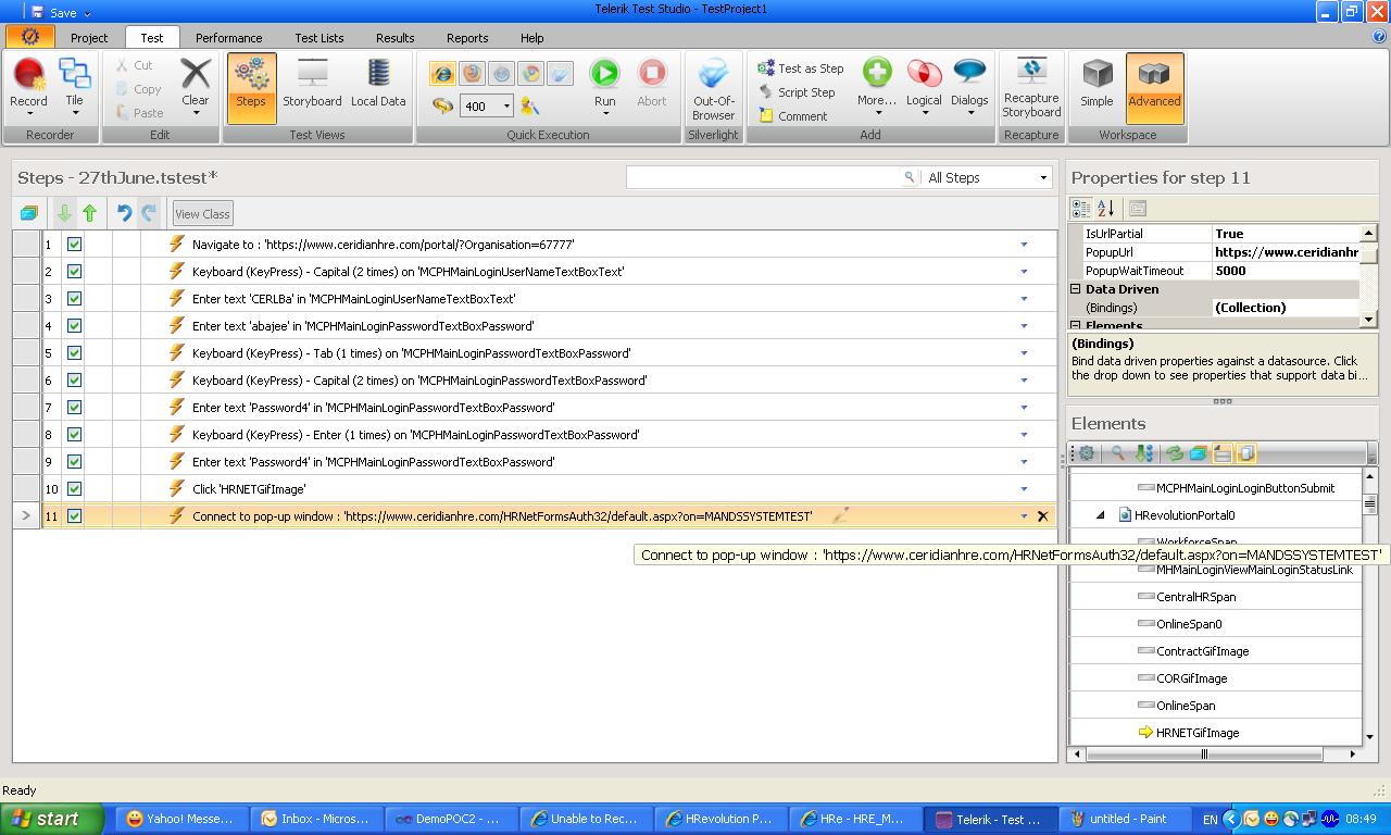 "https://hre.ceridianhre.com/MANDSSYSTEMTEST/default.aspx" . In your recording the step connects to the final URL and records the modal popup actions.