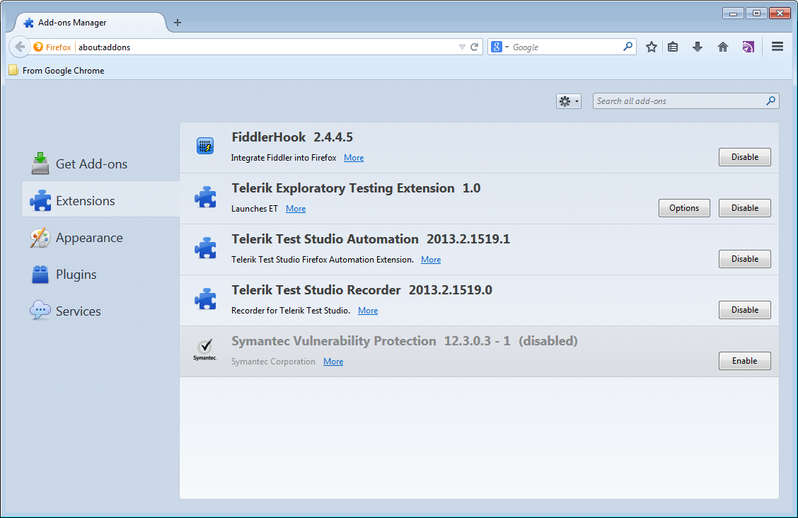 I recently downloaded a trial version of Test Studio and I'm having trouble getting the record and run functions to work in Firefox 30.0. IE, Chrome, and Safari all work perfectly, but Firefox does not run. I've read all of the tutorials I can find to fix this problem, but have had no luck in getting it to work. My extensions appear to be properly enabled. I've tried uninstalling and reinstalling both Firefox and Test Studio multiple times. My registry keys are all pointing to the correct place. But I am still unable to record and run tests.