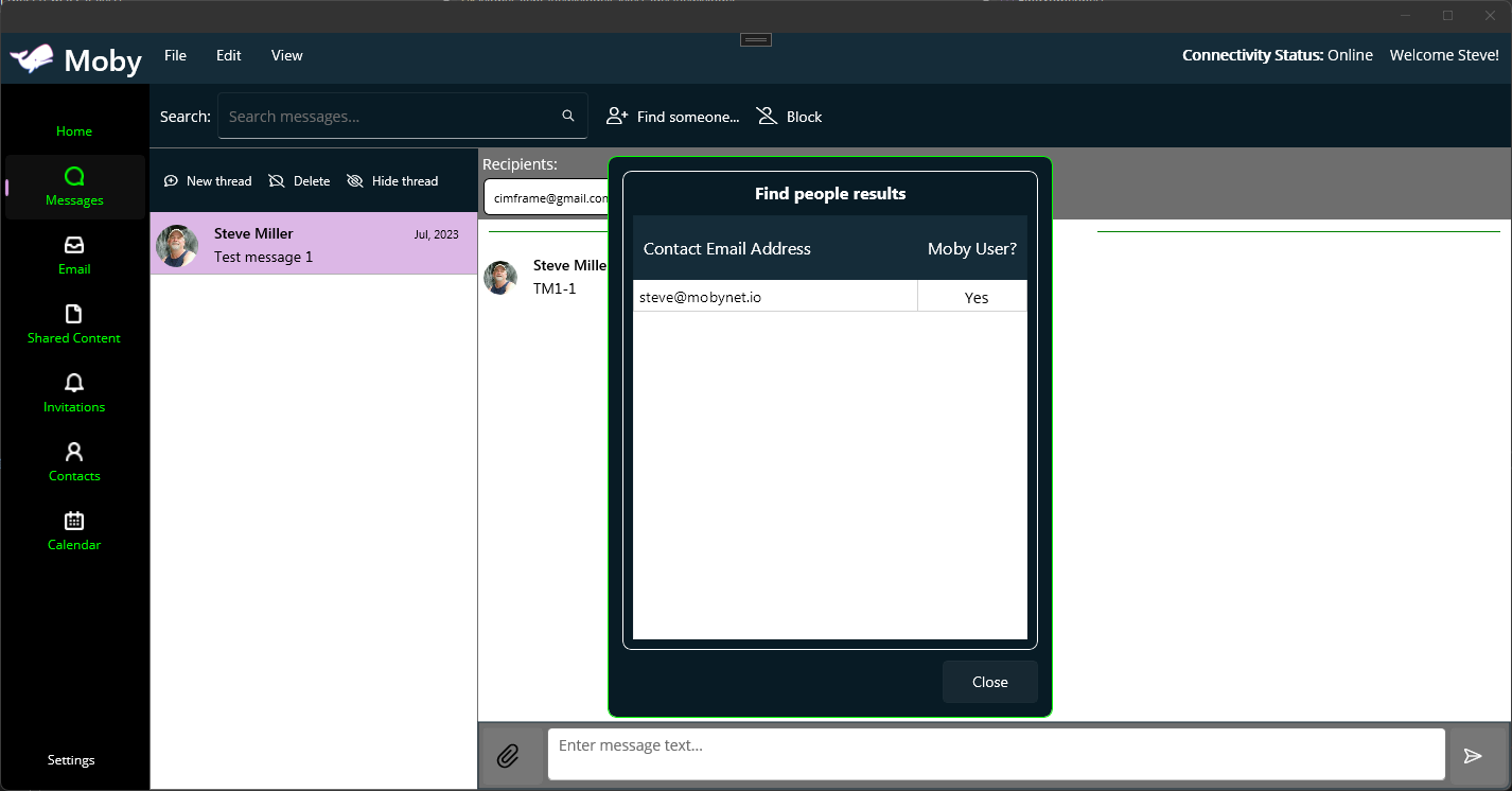 // Find someone results popup.