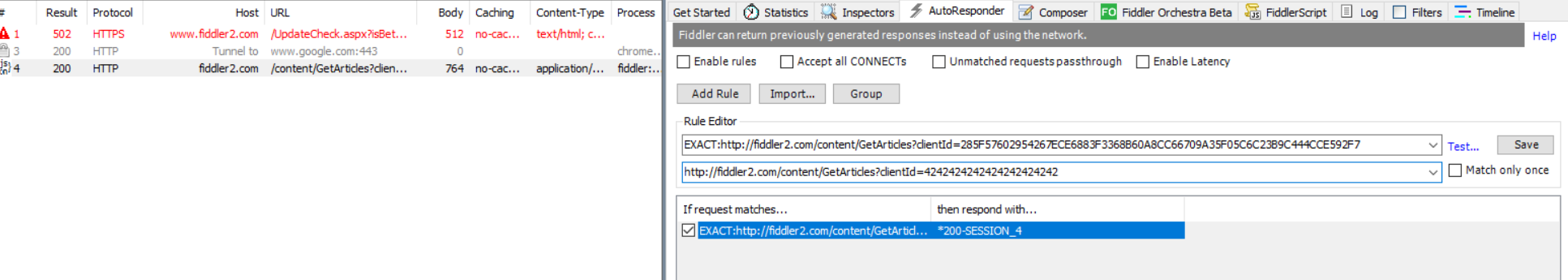 As a side note, you can also try the new Fiddler Everywhere and its Rules tab, which changes how a rule can be created. For example, with Fiddler Everywhere, you could do a rule like this: