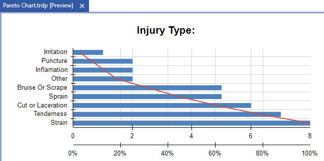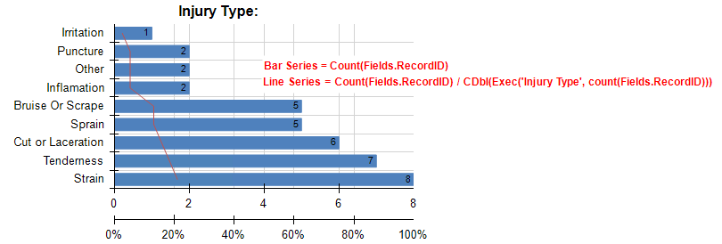 My data set is a list of records with an "Injury Type" field, and the bar series counts the instances of each injury type