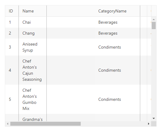 I resized "Name" column, then I could see the bug that a gap has occurred between Name and CategoryName.