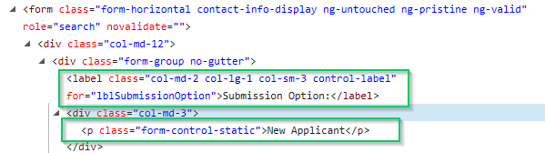 I have a set of what looks on the webpage like rows, but aren't in a table. We need to verify the phrase in the second "column" (the p). Since the "rows" might change in the future, I'd like to find the p based on the index of the label. The labels should stay constant.