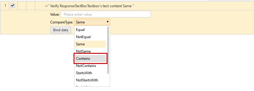 I am creating something with a name of zxcvb using the generate random string test step. Then I'm validating that that string is visible in an element. However in the element there is some space between the beginning of the generated name, so I get failure information in my logs like this