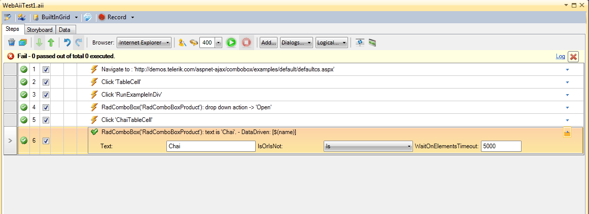 Now when you run your test it will check whether the value you selected from the RadComboBox is equal to the value from your Local Data for each iteration.