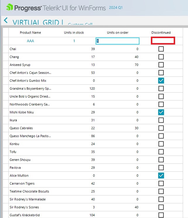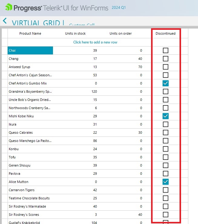 is there a way to show a checkbox cell also when the user add a new row in a Virtual Grid?