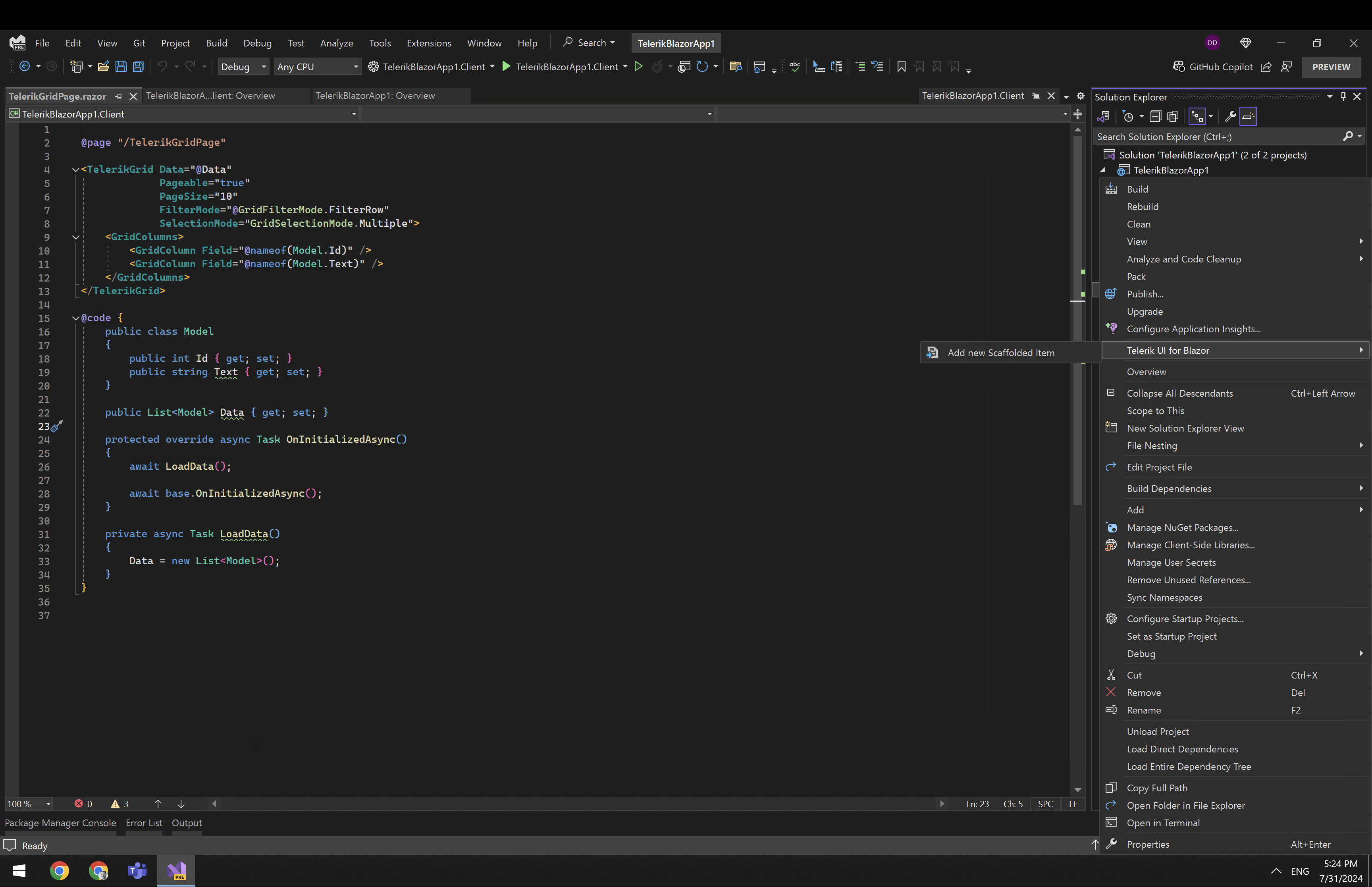 - Razor Page with Telerik Grid
