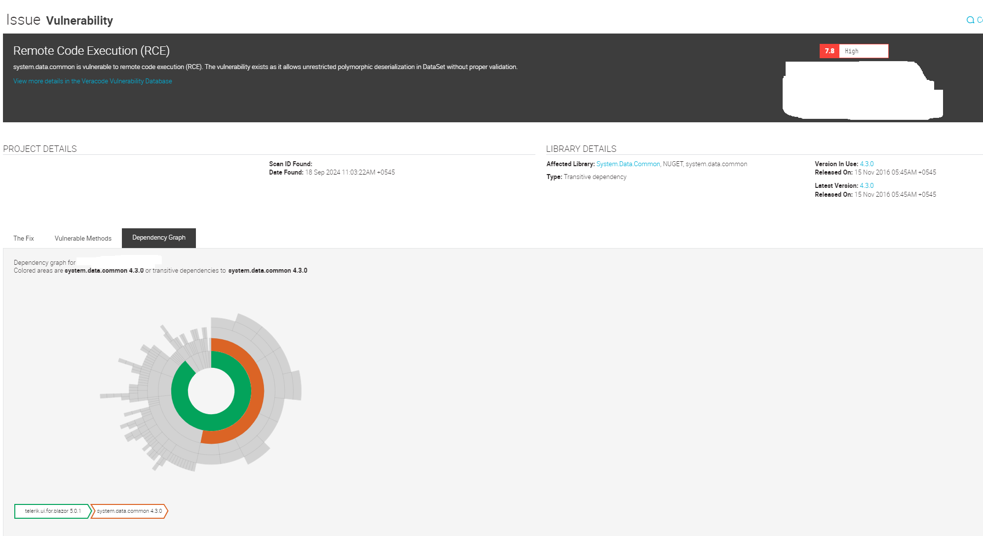 I am using Telerik UI for Blazor version 5.0.1 in my project, and a Veracode scan has identified a vulnerability in this version (see the attached image for details). Could you please advise on a solution to address this issue and how we can resolve it?