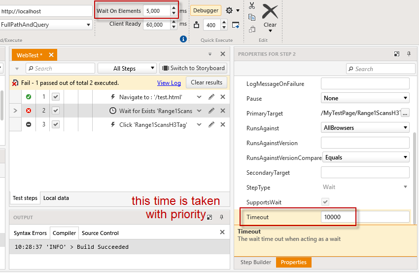In general the work-flow in such scenario is to use step property Timeout value with priority during the execution. Please refer to the attached screenshot.