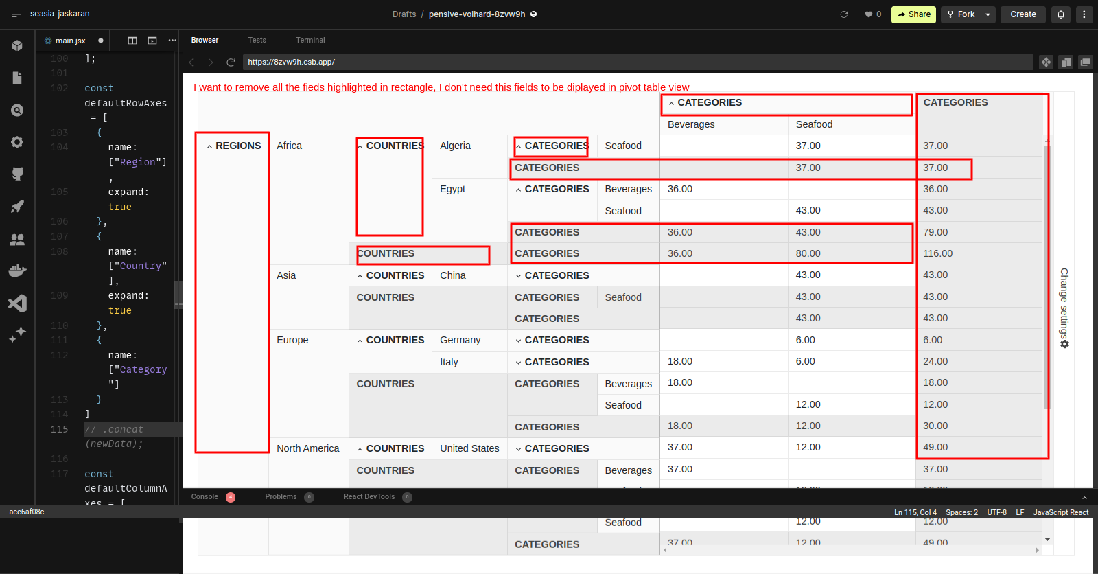 I hope your weak is going smoothly. I am reaching out to you because , I am facing problem to remove Row and Column header from pivot table view. I am using kendo react pivot grid version: