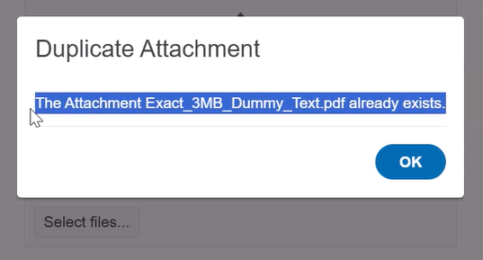 Step 3 => If i try to add again same file i.e dummy.pdf the my custom validation msg show that is file is already present see below screenshot