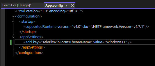 This is a WinForms project in C#, I have the Windows11 theme dll added to the project, and I'm trying to automaticaly apply the Windows11Compact theme for all controls and all forms that will be added in the project. I don't want to set the theme in runtime because I need to see the theme during the design of the application.