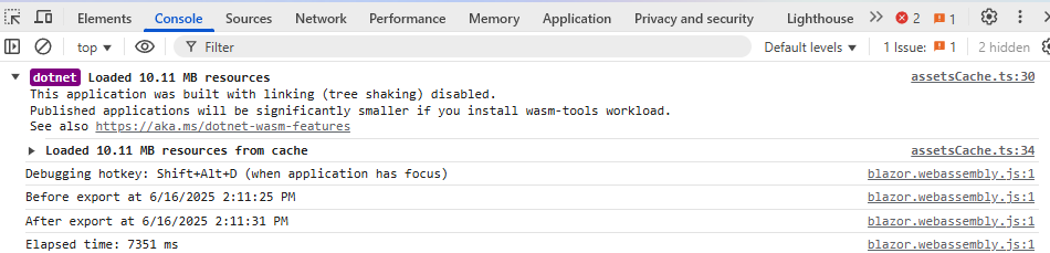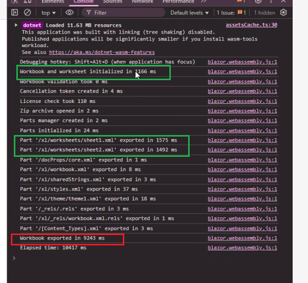 • The .NET runtime in WebAssembly is slower for CPU- and memory-intensive operations, such as exporting even a simple XLSX file, due to the browser sandbox and the nature of WebAssembly execution.