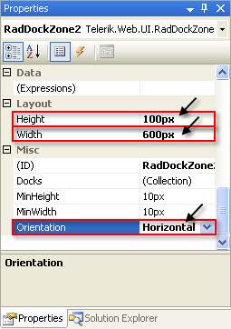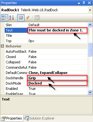 - Set the DockMode property to "Docked". This restricts the RadDock control so that it can only be placed in one of the two dock zones.