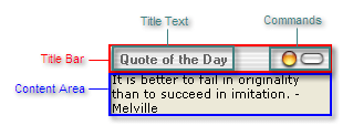 Title Bar - this is the upper part of the control. It is the container of the Title Text and the Commands.