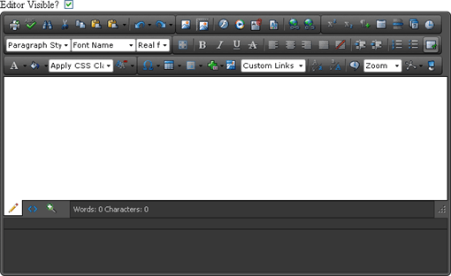 The following example places a standard ASP checkbox input control on the form to toggle RadEditor visibility.