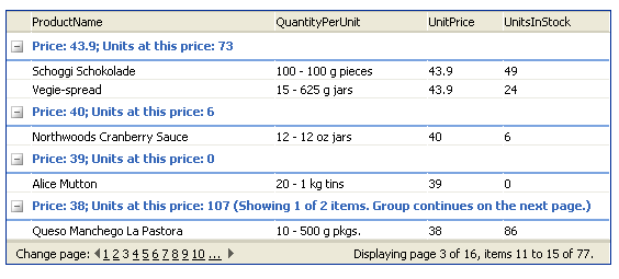<telerik:GridGroupByField FieldName="UnitsInStock" HeaderText="Units at this price"