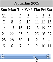 The following tutorial demonstrates using RadSlider to interact with the month of a Standard ASP.NET Calendar control. The tutorial shows how to set minimum and maximum values, change the current slider value, respond to value changes and set the skin.