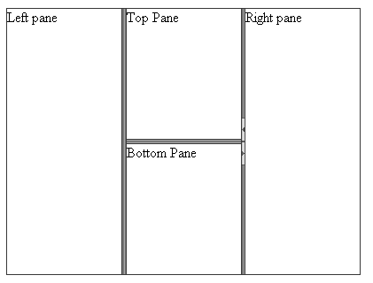 The following layout nests a splitter with a horizontal split bars inside a splitter with vertical split bars: