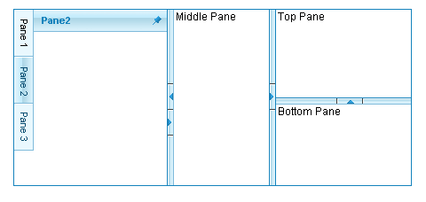 Collapsible Panes. Users can click the collapse buttons on a split bar to collapse the adjacent panes, and then use the expand button on the split bar to restore the pane to its previous size.