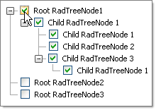 In the example below, the OnClientNodeChecked property of RadTreeView is set to clientNodeChecked. The clientNodeChecked function calls the UpdateAllChildren() function with a reference to the child Nodes collection and the checked status of the clicked Node.