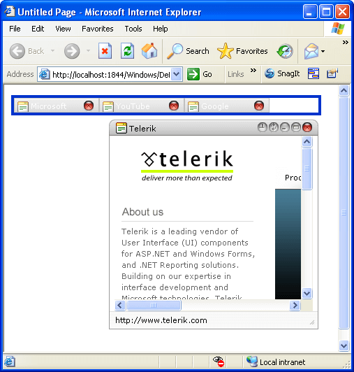 You can change this default behavior by providing your windows with an area that acts like a task bar. This area is called a minimize zone. The minimize zone can be any HTML element such as a div or Panel control. You can tailor the element to look like a task bar, to run vertically along the left side, or any other configuration you like.