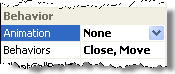 To specify a combination of behaviors (other than the default), combine Behaviors values. For example, if you want to let the user close the window using a button on the title bar, and to move the window by dragging it, but do not want any other buttons on the title bar, set Behaviors="Close, Move":