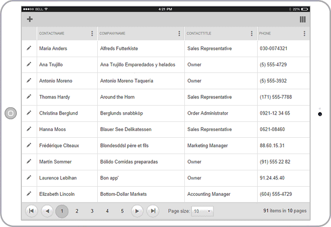 Responsive controls—The responsive controls feature single HTML rendering and are adapted for various device and browser sizes in the browser through styles and scripts. The whole script and style information is transmitted to the browser, and with CSS media queries the browser presents the optimized layout for the control. A responsive control will have the same HTML rendering in all resolutions, but CSS rules or JavaScript logic may reorder, resize, or even hide certain elements from its UI to make it more suitable for the current dimensions. For more information, refer to the responsive control demos online.