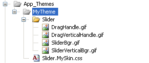 This example assumes a custom skin for a RadSlider named "MySkin" and that you are creating a new theme called "MyTheme".